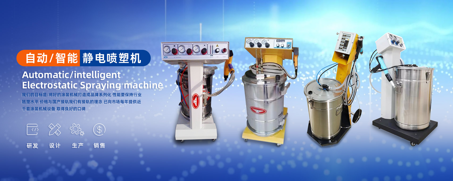 專業(yè)研發(fā)、設計、生產、銷售靜電噴塑機、自動靜電噴塑機、智能靜電噴塑機